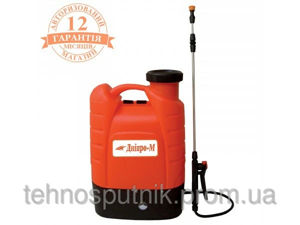 Отличительной особенностью опрыскивателя "Дніпро-М" SPE-18B является то, что распыление осуществляется за счет электрического гелевого аккумулятора 12V / 8 Ач, благодаря этому инструмент практически бесшумный в работе. Аккумулятор создает давление 0.4 - 0.45 Мпа, что позволяет распылять жидкость в горизонтальном положении до 12 м включительно. Объем бака позволяет вместить 14 литров жидкости. Сам же бак выполнен из полипропилена, чтобы максимально уменьшить вес и увеличить ударостойкость.